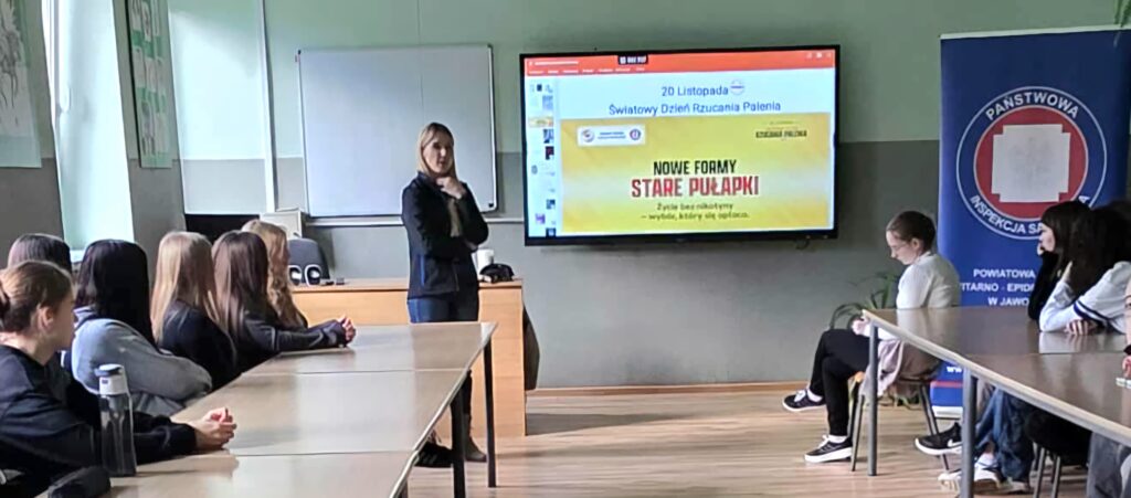 W ramach Tygodnia Profilaktyki klasa 1a zaproponowała zajęcia z pracownikiem PSSE w Jaworznie. Temat spotkania “Współczesne używki”. Dziękujemy Powiatowej Stacji Sanitarno-Epidemiologicznej w Jaworznie za pomoc w realizacji.