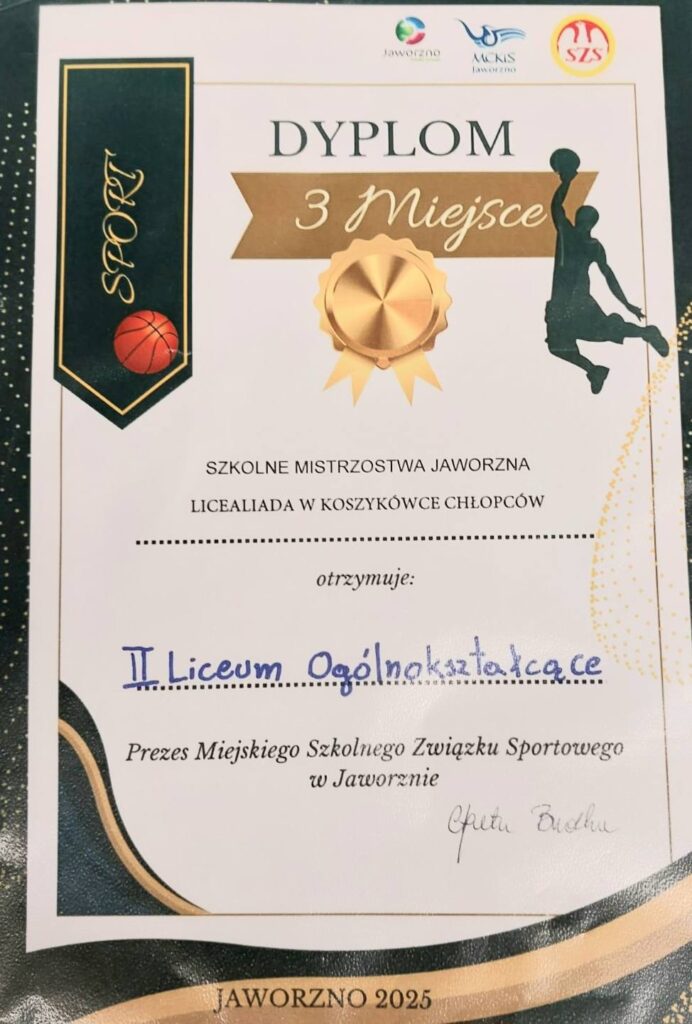 W mistrzostwach Jaworzna szkół ponadpodstawowych w piłce koszykowej chłopców nasza szkolna drużyna w składzie – Witold Baran, Białas Jakub i Krzysztof, Czak Błażej, Hajdecki Jan, Kiedrzyński Rafał, Sośnierz Julian, Sybis Przemysław, Szuster Krzysztof, Wilk Aleksander, Żmija Wojciech po bardzo zaciętych 4 meczach podczas rozgrywania turnieju zajęła 3 miejsce. Gratulacje!