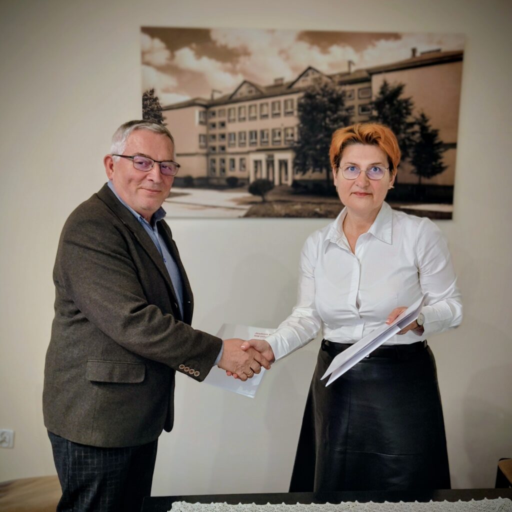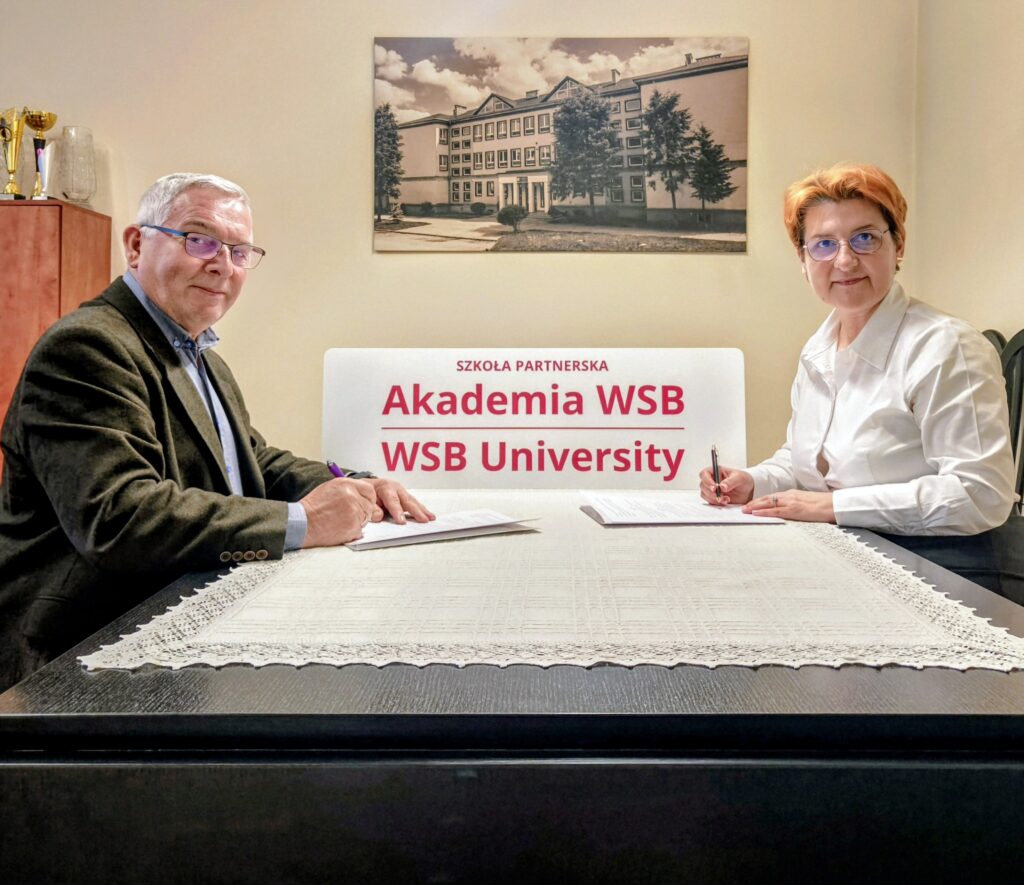 umowa pomiędzy dyrektorem liceum Witoldem Ochmanem a przedstawicielką Akademii WSB prodziekanem ds. rozwoju Bożeną Garbocz. Umowa daje możliwość wspólnej realizacji