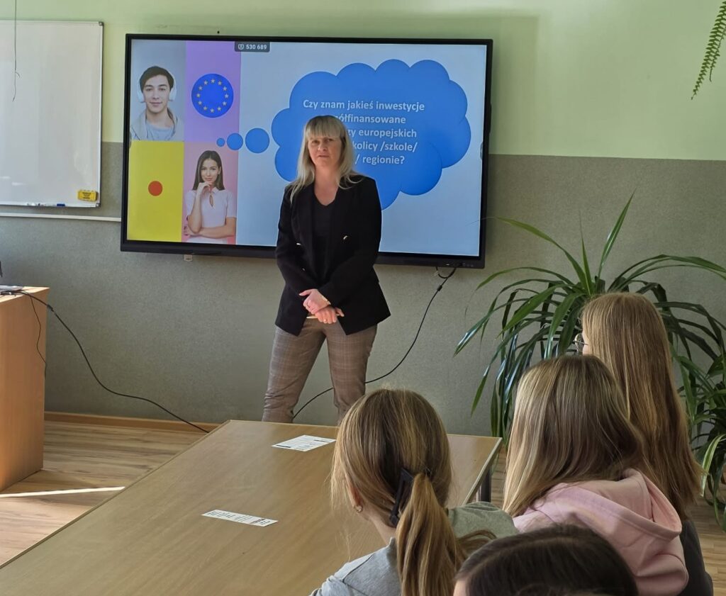 W naszym liceum zostało zorganizowane spotkanie uczniów klas trzecich na temat funduszy unijnych.