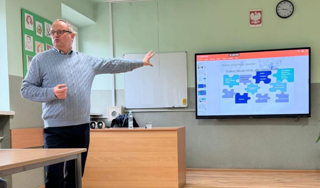 Uczniowie naszej szkoły uczestniczyli w zajęciach prowadzonych przez Pana Jacka Kaczkę KPMG CFO ADVISORY pt. “Kariera w międzynarodowej firmie doradczej”. Pan Jacek Kaczka wykładowca kilku renomowanych uczelni wyższych (Uniwersytet Warszawski, SGH w Warszawie), konsultant Banku Światowego, Senior Menedżer w KPMG Audyt opowiedział w jaki sposób wygląda ścieżka kariery w międzynarodowej firmie.