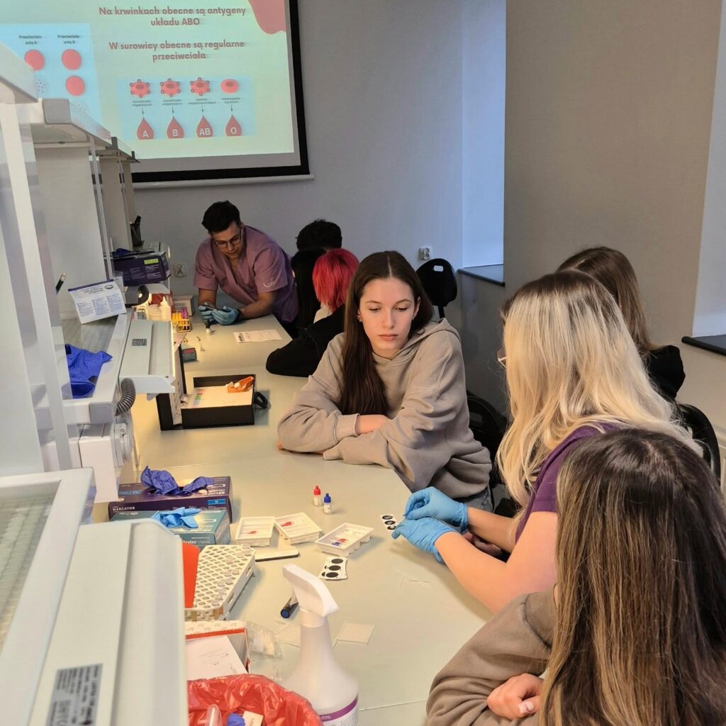 Dni otwarte na Śląskim Uniwersytecie Medycznym Wydział Nauk Farmaceutycznych w Sosnowcu. Klasa 3b wzięła udział w licznych i ciekawych wykładach oraz warsztatach np. określała grupę krwi, obserwowała patologię tkanek oraz wykonywała miareczkowanie. Dziękujemy za wspólną naukę i świetnie spędzony czas!